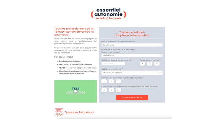 C’est une version simplifiée du logiciel MYPRO qui peut être adaptée à la charte graphique du partenaire pour s’insérer dans son site web, comme ici avec l’exemple sur le site Essentiel Autonomie de Malakoff Humanis.