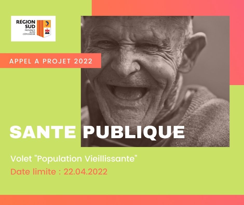 La Région Sud lance son appel à projets santé publique 2022 avec un volet "population vieillissante" qui s'intèresse à deux thématiques :