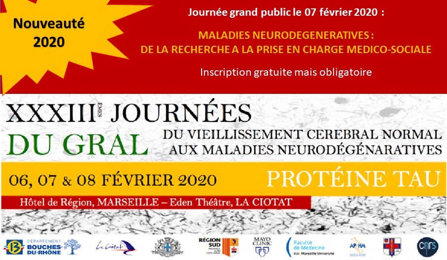 Nouveauté de cette édition 2020, le Groupe de Recherche sur la Maladie d’Alzheimer organise à l’Hôtel de Région (27 place Jules Guesde, Marseille), le vendredi 7 février à partir de 9h, une journée ouverte au grand public, aux patients et à leurs accompagnants sur le thème :