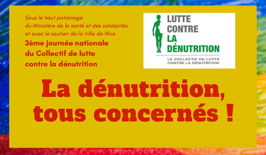 Pour sa 3ème journée nationale, le Collectif de lutte contre la dénutrition vous donne rendez-vous le vendredi 20 décembre à Nice de 8h30 à 12h30. Après Paris en 2017 et en 2018 à la mairie de Paris, c’est la Ville de Nice qui nous accueille cette année, avec également pour cette organisation, le soutien du CHU de Nice et de Nutrition Nice. Cette année, un prix récompensera les initiatives innovantes de prévention, de dépistage et de prise en charge de la dénutrition. Pour faire acte de candidature, merci d’envoyer une note d’une page, décrivant votre action, les partenaires, l’impact, le budget éventuel, les retombées… bref présentez-nous votre action en envoyant un mail au collectifdenutrition@gmail.com.