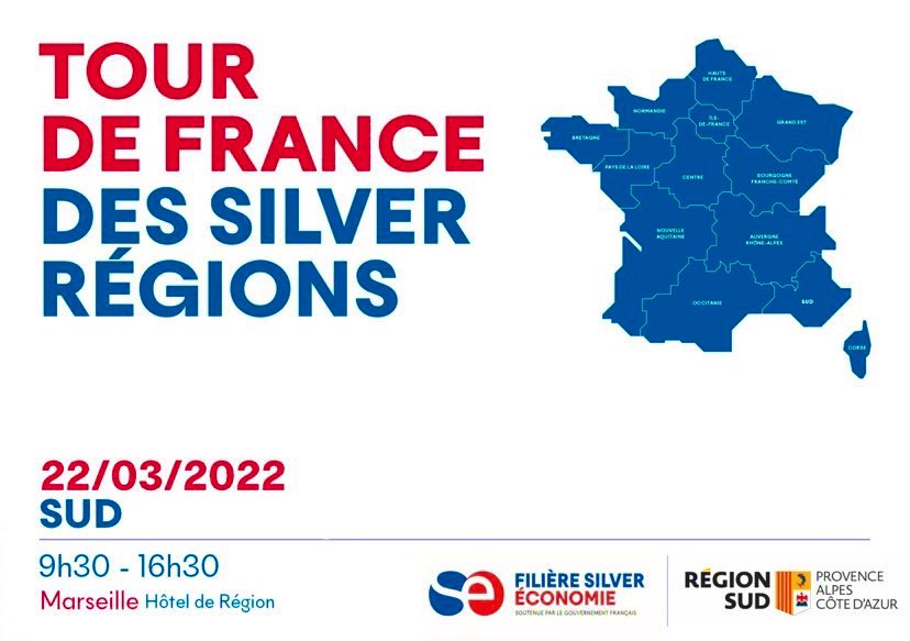Le 22 mars se tenait l’étape en Région Sud du Tour de France des Silver Régions initié par la Filière Silver Economie. C’est au cœur de l’Hôtel de Région à Marseille qu’étaient réunis la filière stratégique qui bénéficie notamment d’une OIR (Opération d'Intérêt Régional) et d’acteurs stratégiques à son service dont le Gérontopôle Sud fait partie.
